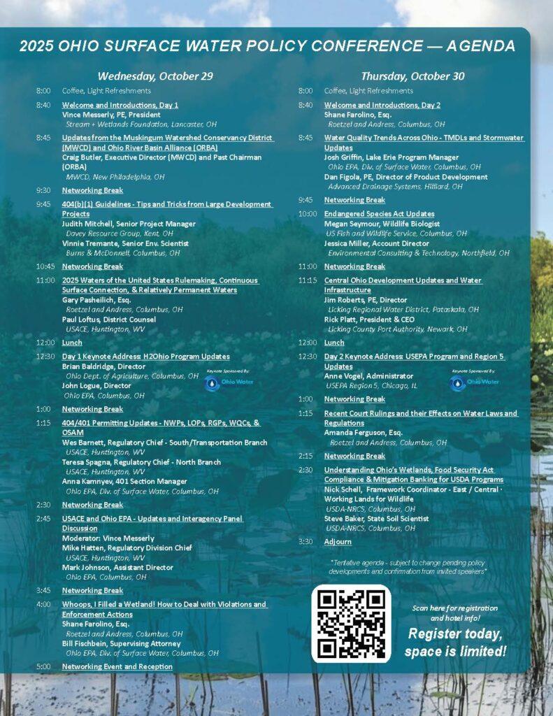 Hosted by the Stream + Wetlands Foundation, Davey Resource Group, Roetzel, ADS, and the Ohio Water Partnership, this two-day event will bring together thought leaders across business, industry, regulatory agencies, and the legal field to discuss: